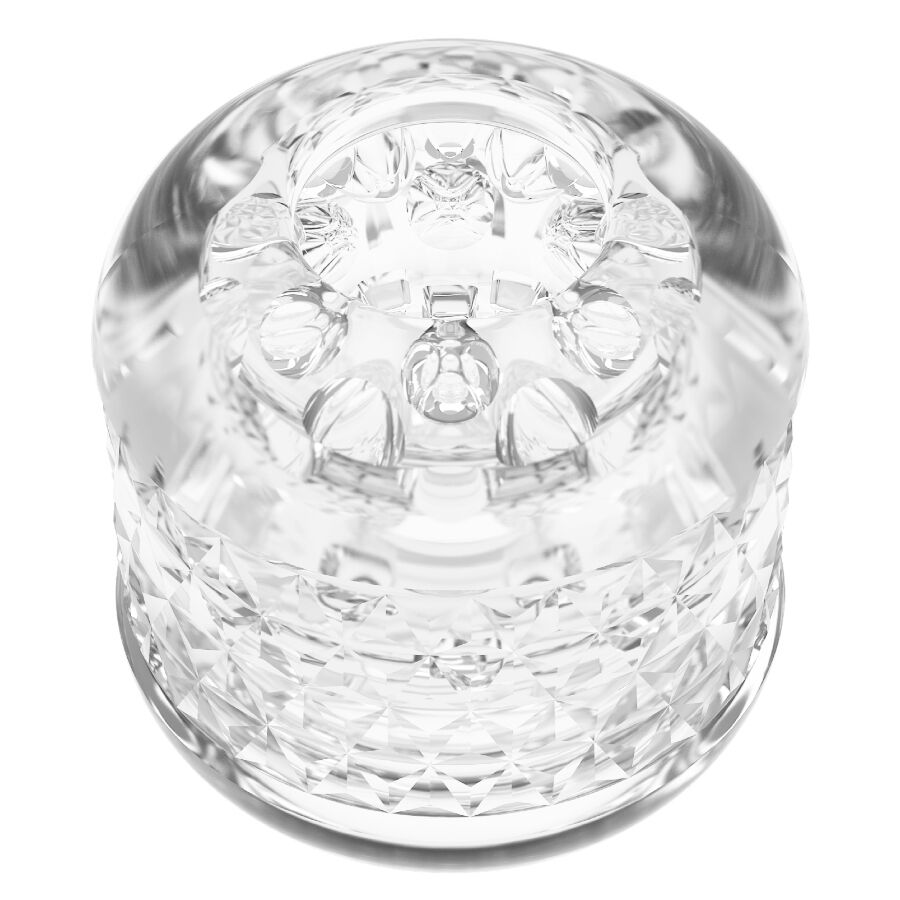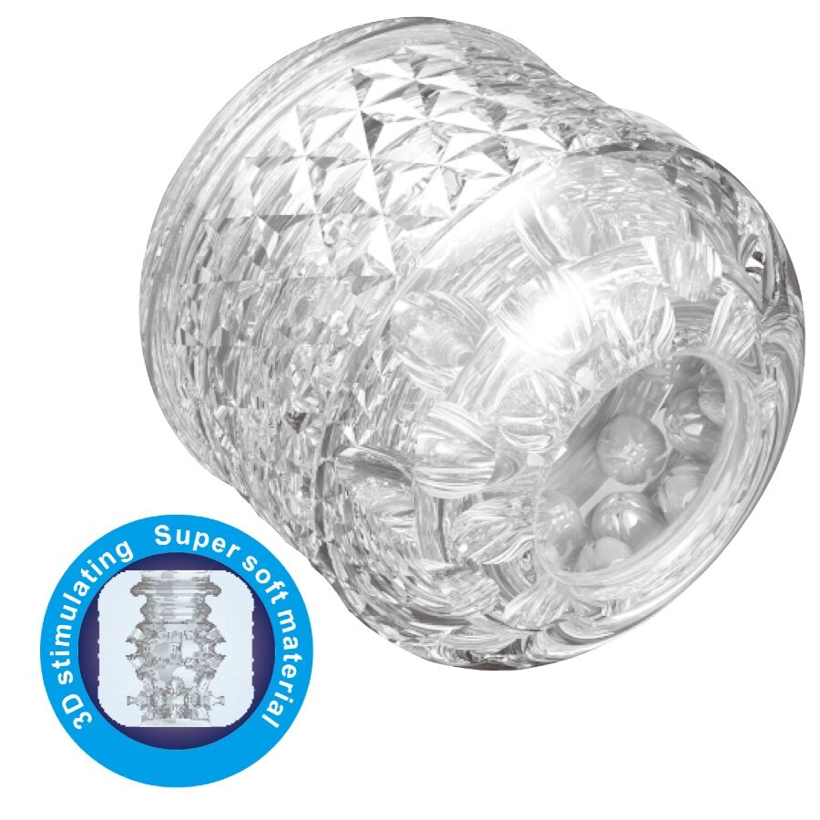 Elegante masturbador manual na cor transparente, de qualidade incomparável, que oferece uma estimulação peniana altamente irresistível.